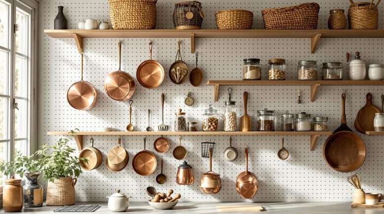 Il y a quelques années, en vidant le grenier de ma grand-mère, j’ai découvert dans un carton poussiéreux une planche perforée toute simple, peinte en blanc crème. « Ça, ma chérie, c’était mon garde-manger organisé ! », m’a-t-elle expliqué avec un sourire nostalgique. Cette astuce des années 1950, inspirée des cuisines américaines d’après-guerre, transformait n’importe quel mur de cellier en véritable centre de rangement modulable. L’odeur de bois ciré et la patine du temps témoignaient de décennies d’utilisation quotidienne. Aujourd’hui, je partage avec vous cette technique intemporelle qui a révolutionné ma propre cuisine !